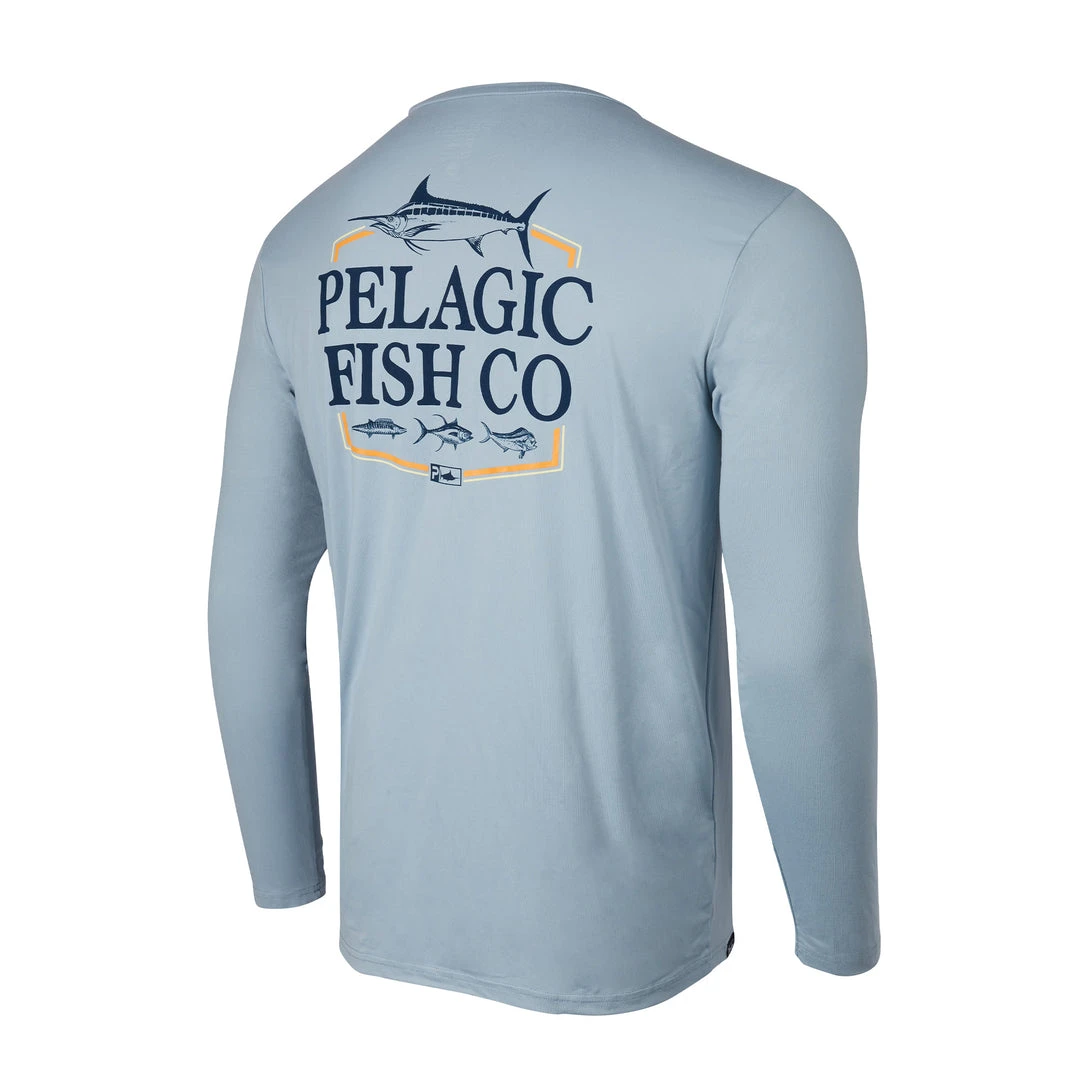 - Men’s long sleeve 50+ UPF performance shirt
