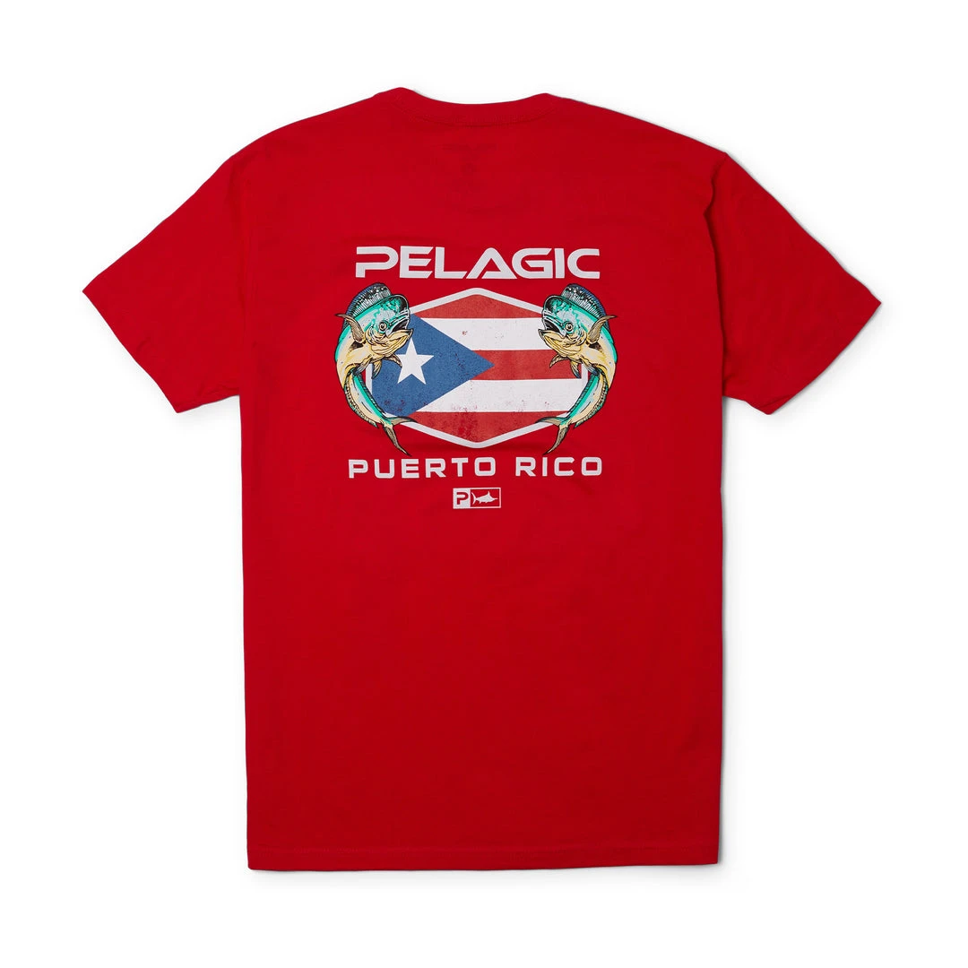 Featuring classic styling, this S/S T-shirt offers a butter-soft, premium design complete with a custom Puerto Rico design including dorado fish graphics stamped with the Pelagic logo.